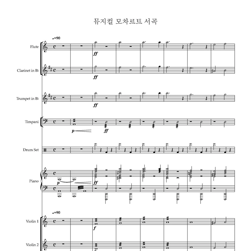 악기편성 : Fl / Cl in Bb / Tpt in Bb/ Timpani / Set Drum / Piano / Vn1,2,3 / Vc / Cb